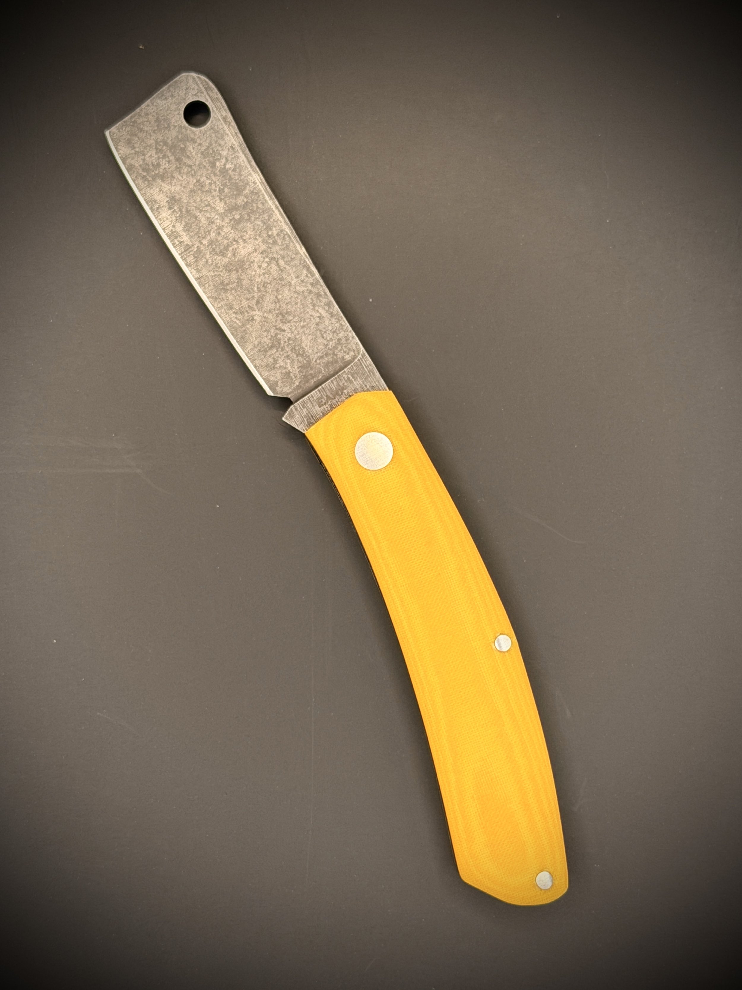 This weekend at the Oklahoma Knife Show I got to hang out with my friend, Brent Graaf of Clever Knives. He had a cool little lock back cleaver on his table. He said he used to do it in a slipjoint and he would send me the pattern. To relax from the show, instead of going to work on something for someone else, I like to recharge my batteries and do a fun one for me.